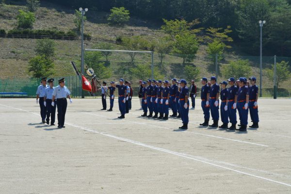 ピリッとした空気の中、ビシッと整列した第4分団の皆さん、見ている方も背筋がピシッと。とても清々しい雰囲気です。