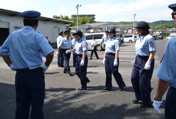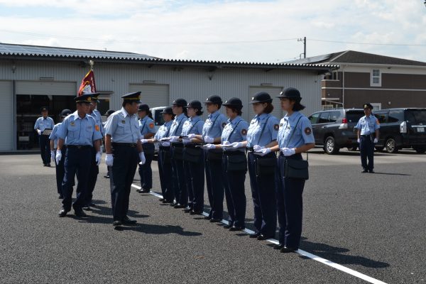 手帳点検、服装点検が始まりました。緊張した雰囲気の中、きちっと微動だにせず、暑さも吹き飛ばして…。