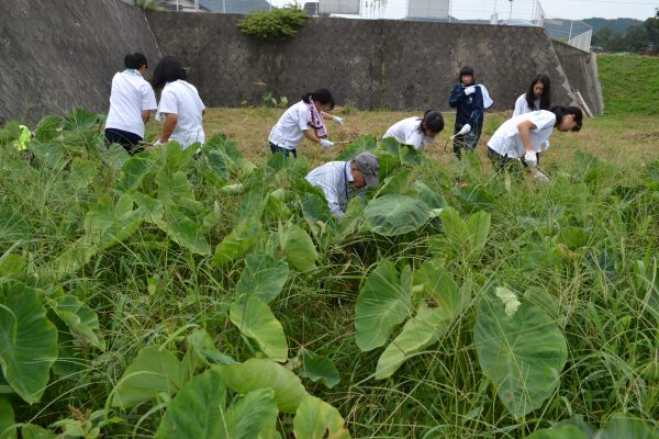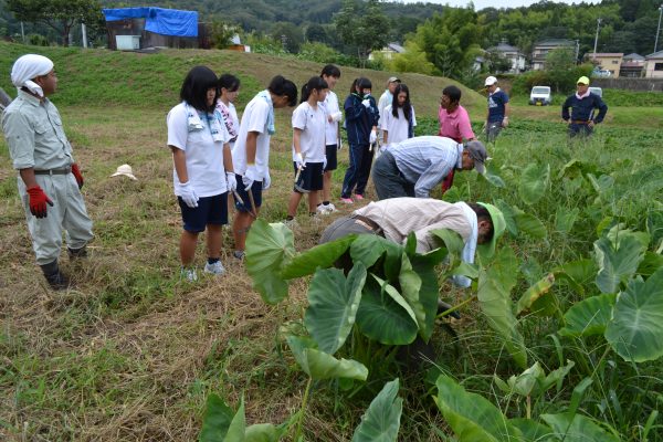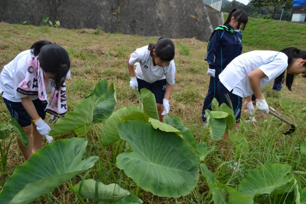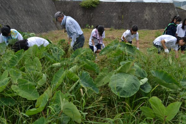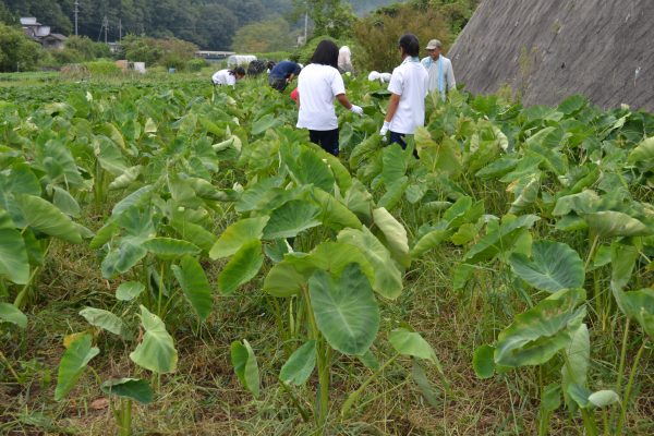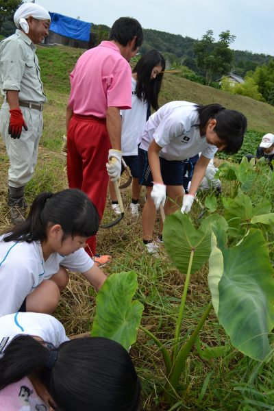 高校生ボランティア、里芋畑がすっきり!