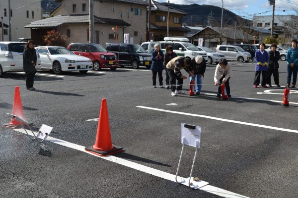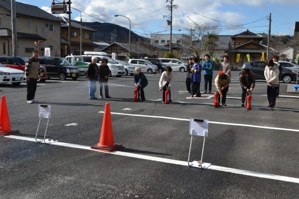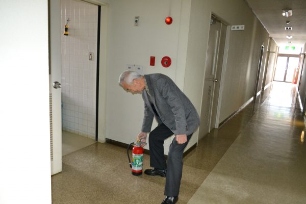 消火器を使っての消火訓練