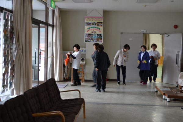 ホールを使ってみえた方も職員の指示に従い避難訓練