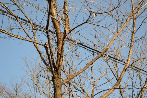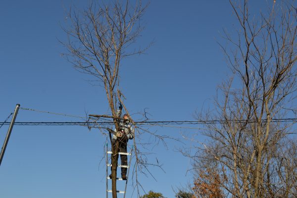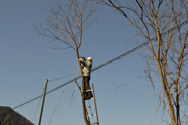 小里城跡駐車場の木が電線にかかって危険なので、