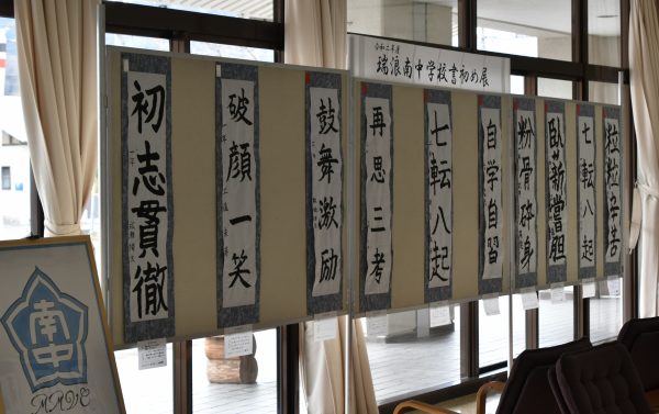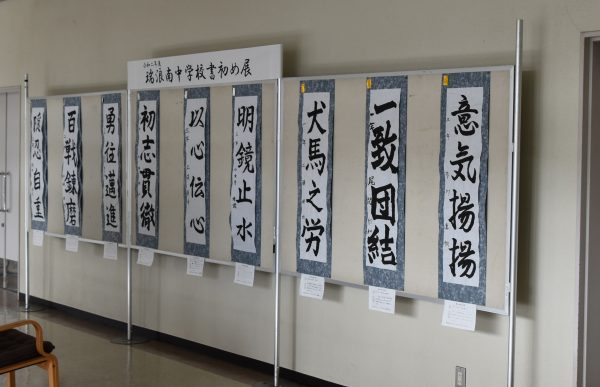 瑞浪南中 書初めと生徒会作成のパネル展示中!