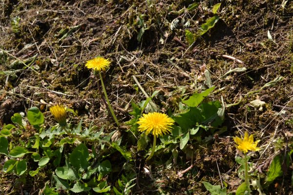 草刈り機を逃れたタンポポが太陽の光をいっぱい集めて開いていました。