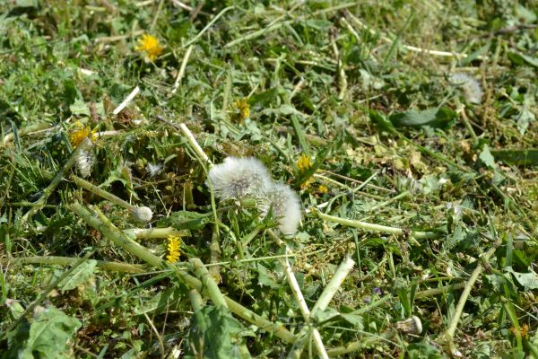刈りとられたタンポポの綿毛。