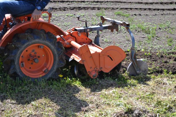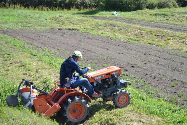 トラクターで、畑の境の畔を耕しました。