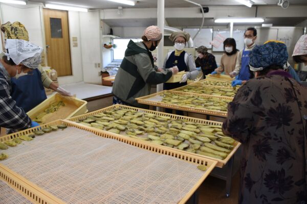 日吉の「天狗の台所」におじゃまして、乾燥機のトレイにならべていきます。