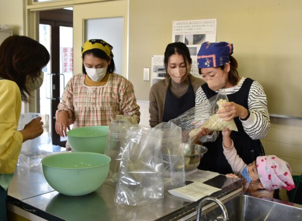 11月28日 本日の幼児母親学級学習会はみそをつくりました。
