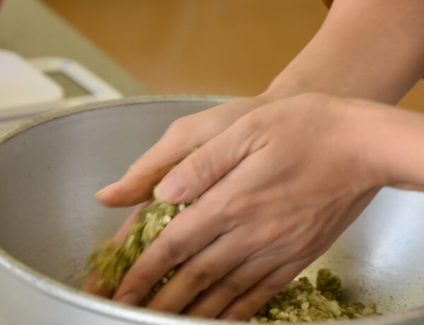 麹と塩をすり合わせるようにしっかり混ぜます。塩きりというそうです。