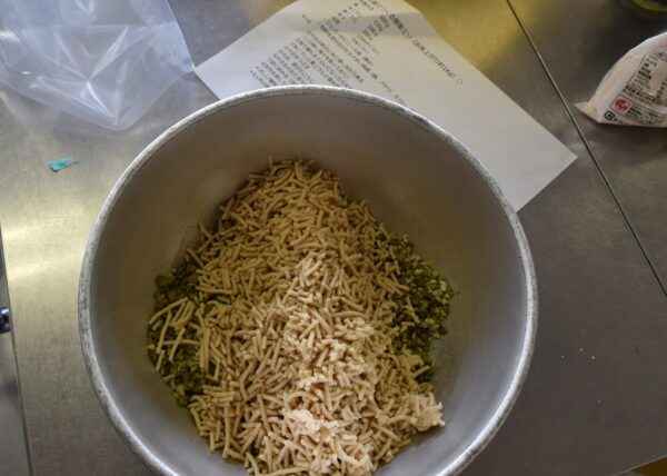 最初に材料を計って分けます。塩分は控えめのギリギリの量だそうです。