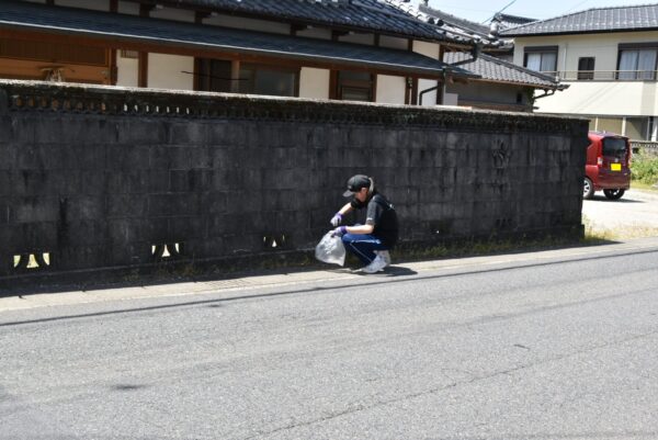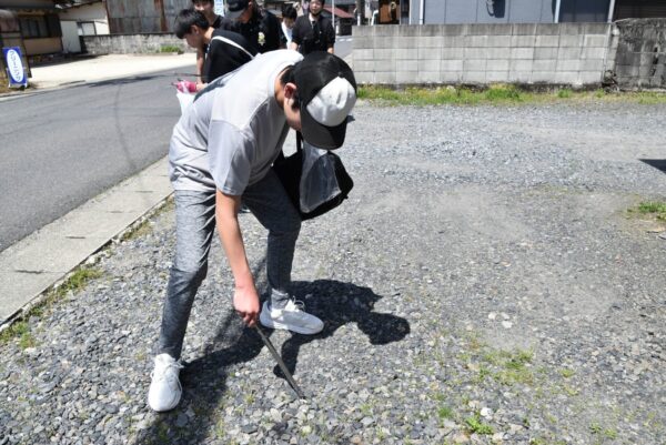 夏日となり暑い中、瑞浪南中学校で昨年度2月に任意団体として結成された「ボランティア部」が、正午稲津公民館前から町内清掃に出発しました。