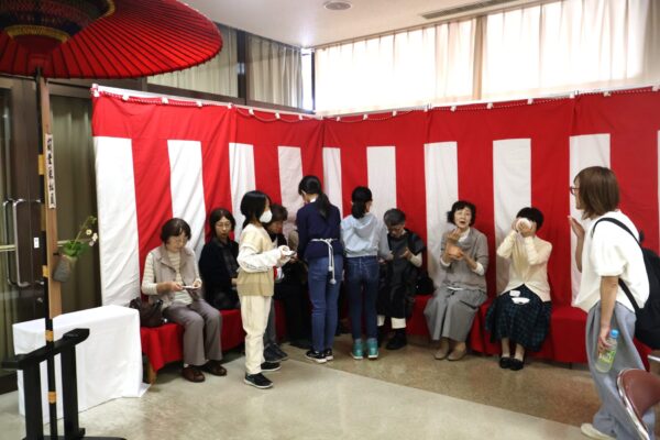 一旦ホールに入ってもらい出口で手渡ししました。