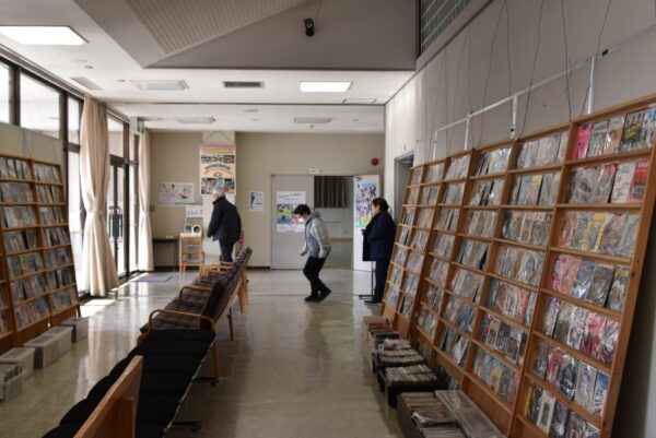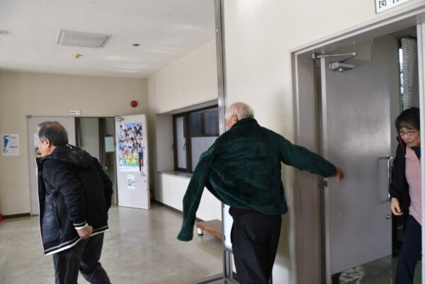 図書室で活動していた、寿大学カラオケクラブの方たちを避難誘導