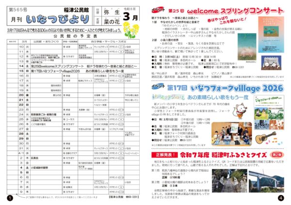 今月の「いなつびより」 令和8年 3月 565号
