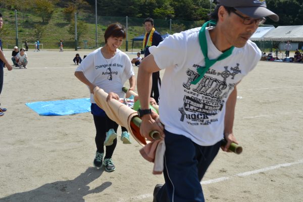毛布担架リレー