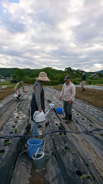 昨日苗植え終了のあいさつも時に理事長から「朝6時から水やりをします、ご協力いただける方はよろしくお願いします」