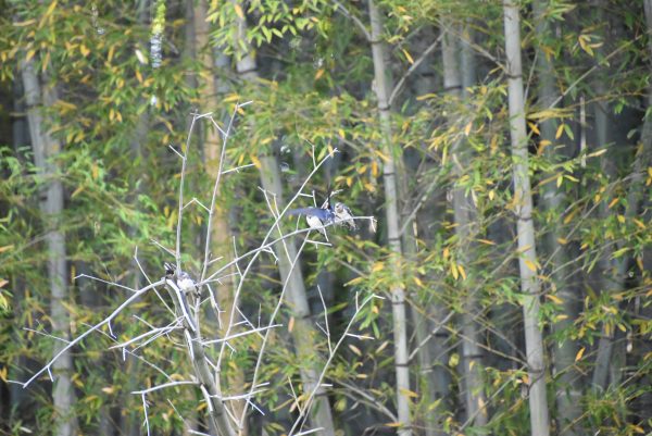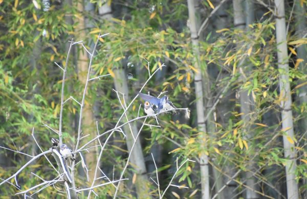 左下に1羽 枝に3羽